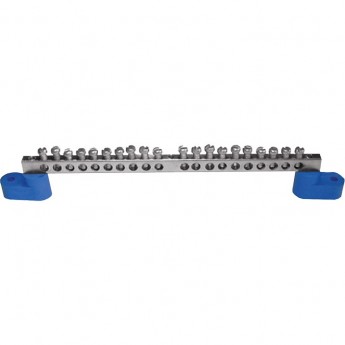 Шина EKF PROXIMA "0" N 6x9мм 20 отв. оцинкованная 2 синих угловых изолятора
